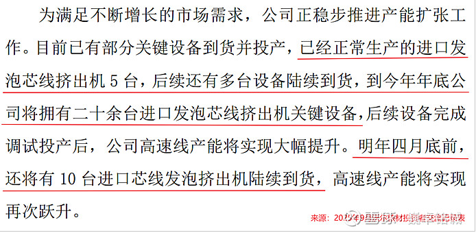 就在2025年9月,公司表示,目前正常生产的进口发泡芯线挤出机已有5台,预计年底将增至20台,2026年4月底增至30台,产能建设正快马加鞭的推进。