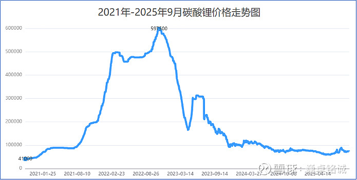 自2020年末起,碳酸锂价格从4万元/吨一路狂飙,并于2022年底达到59.75万元/吨的峰值,此后迅速下滑,2025年6月时仅为6万元/吨,变化极大。