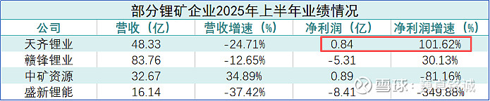 2025年上半年,对比天齐锂业、赣锋锂业、中矿资源、盛新锂能等部分同行业绩,天齐锂业是唯一净利润增幅超100%的企业,且成功实现扭亏为盈。