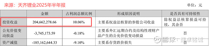 据财报披露,2025年上半年,天齐锂业的投资收益达2.05亿,同比增长118%,占利润总额比例达10.06%。
