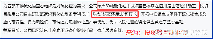 9月16日,在与投资者进行的互动中,天齐锂业披露,公司已顺利完成硫化锂的产业化筹备工作,年产50吨硫化锂中试项目已实质落地并动工。