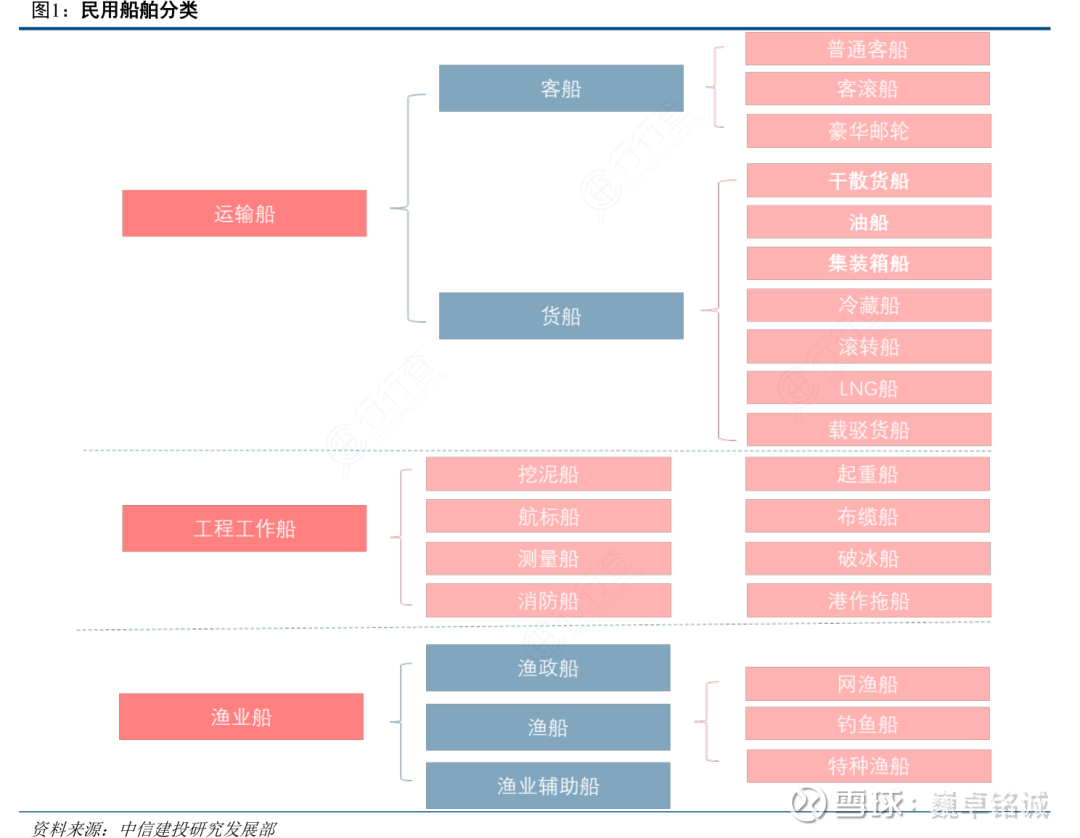 1)按航行区域:可分为远洋船(续航力超10000海里)、近海船(沿海及邻近海域)、内河船(吃水浅的航道);