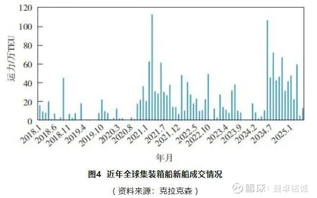 克拉克森数据显示,2025年上半年,集装箱船成交新船192.01万TEU、202艘、2,174.40万载重吨,以TEU计较2024年同期增长25.78%,以船舶数量计较2024年同期增长14.20%。以载重吨估算,全球造船市场新船成交订单中有46.45%为集装箱船,该比例较2024年同期上涨超30%。