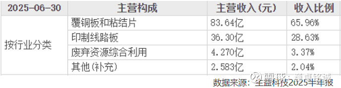 生益科技,主要为电子设备提供“骨架”与“血管”——覆铜板、粘结片等电子电路基材,以及下游延伸的PCB(印制电路板)。其中,覆铜板和粘结片业务是公司核心收入来源,2025上半年营收超83亿,占比约达66%。