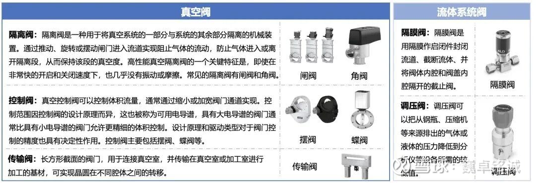 气体/液体/真空系统类零部件是半导体设备中传输、控制特种气体/液体并维持真空环境的核心组件,主要应用于薄膜沉积设备、刻蚀设备和离子注入设备等干法设备。