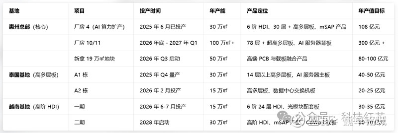 :惠州厂房 10/11 项目 (44 亿元)、越南二期、泰国 A2 栋扩产、mSAP 工艺升级