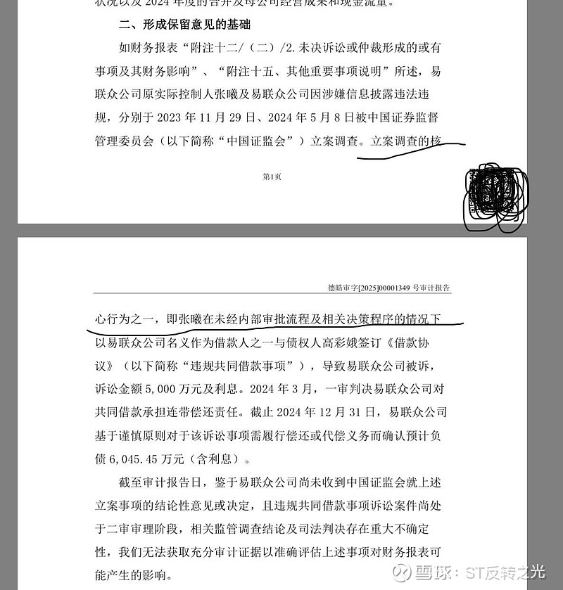 $ST易联众(SZ300096)$ 回顾一下联众被立案的原因,审计报告中是这样描述的:被立案调查的核心行为之一,即张曦在未经内部审批流程及相关决策程序的情况下以易联众公司名义作借款人之一与债权人高彩娥签订《借款协议》(以下简称“违规共同借款事项”),导致易联众公司被诉,诉讼金额5,000万元及利息。现在来看,这一事项也基本定论,一审二审再审,除非高女士申请检察院监督,概率应该小。那么已经调查了快两年的立案,我觉得结果也应该差不多了,这两天盘中也是时有异动,看来部分资金也是按捺不住,因为不知道哪一天立案处罚就落地了,大家也不想到了那天再去抬轿吧![]()