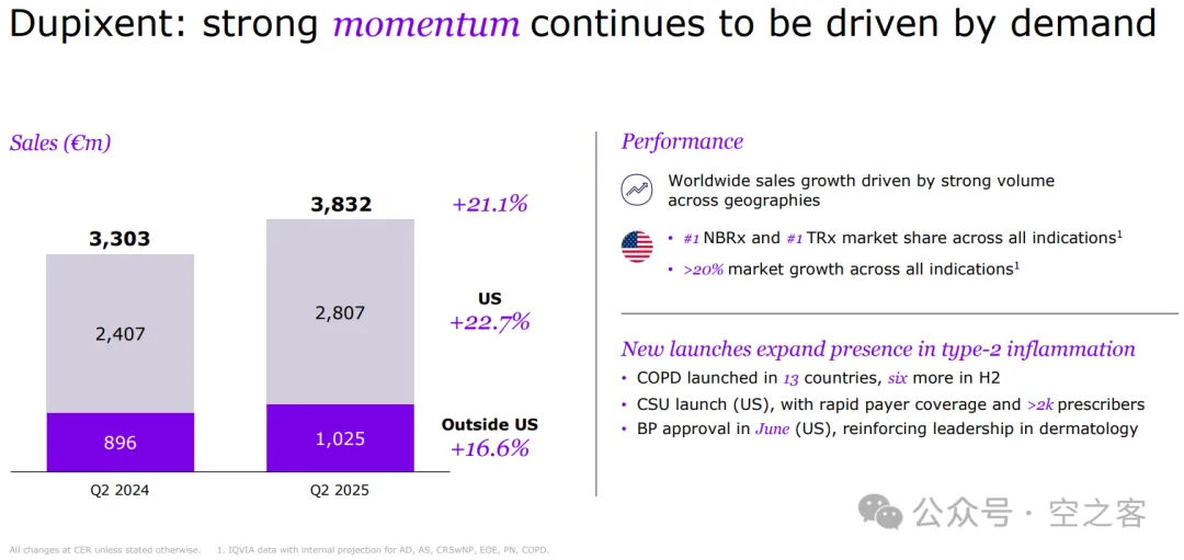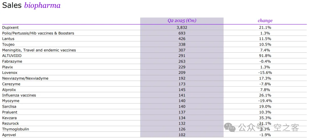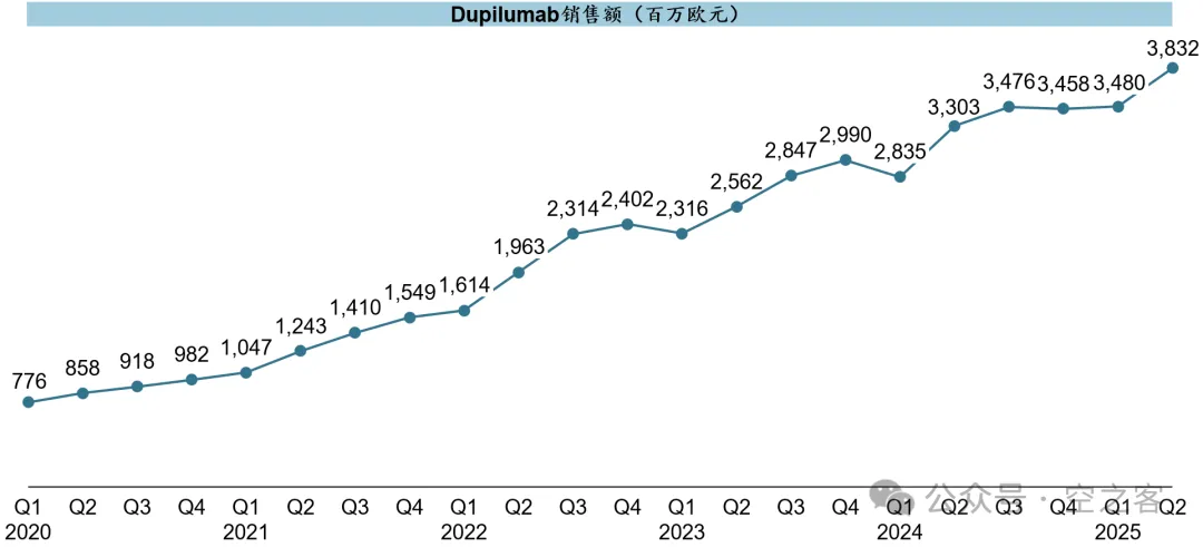 上个季度笔者还嘲笑过Dupilumab走入增长瓶颈,在此立正挨打,在COPD持续在各国销售和CSU获批的驱动下,再次突破已经横亘了快一年的结界,单季超过€3.8b。