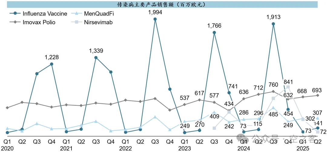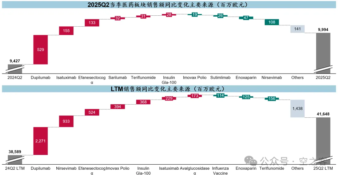 疫苗板块里流感和脊灰的体量尚在,但增量也比较有限;RSV抗体Nirsevimab LTM累计也就不到€2b。