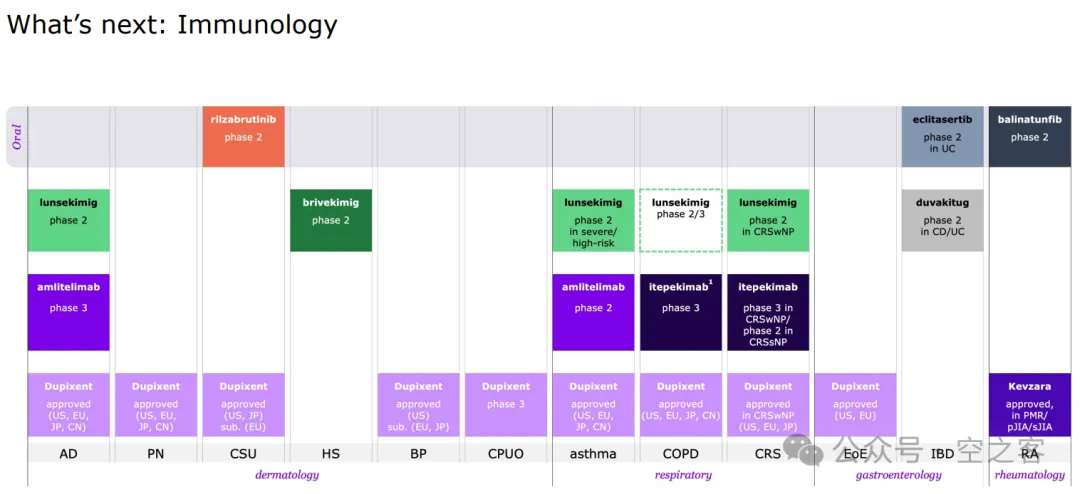 每个季度回头看这张十分炫酷的自免路线图,都会感叹于这些年SNY的抽象:铁打的副GOAT都刷出411了,流水的队友看着全是CBA,BTK、OX-40、IL-33、TNFR先后出现波折,现在又把IL13/TSLP拱到了台前……这大概就是凭运气赚来的钱,终将凭实力亏回去?