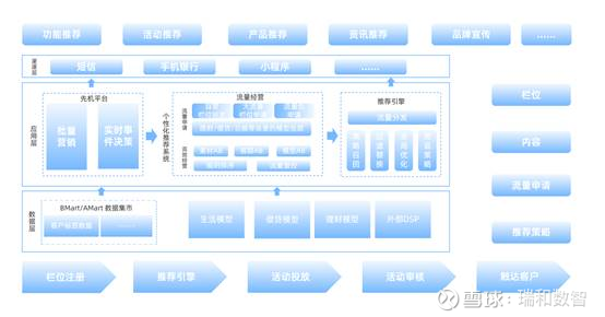 为应对这些挑战,瑞和数智助力该银行进行初代个性化推荐系统的迭代,提升系统的智能化水平与业务敏捷性,推动系统向新一代大数据推荐引擎升级,构建更灵活、精准、可评估的智能推荐能力,实现从“人找产品”到“产品找人”的关键跨越。