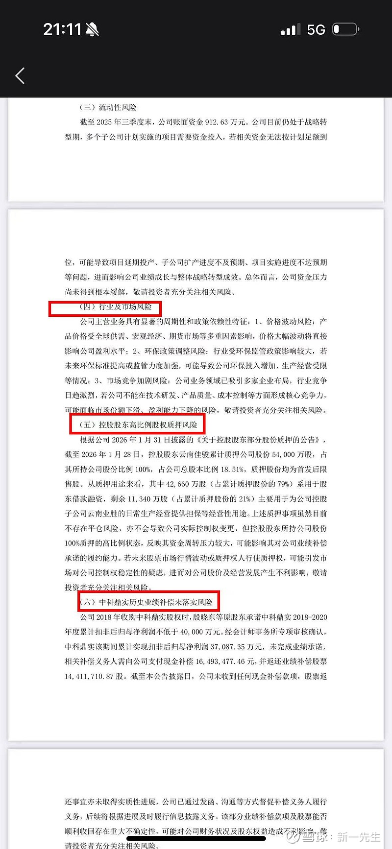 (3)流动性风险:这里说的时间点是2025年三季度末,现在26年了,25年末的资金有多少可以翻回业绩预告,只不过那还不是正式的审计报告的金额。