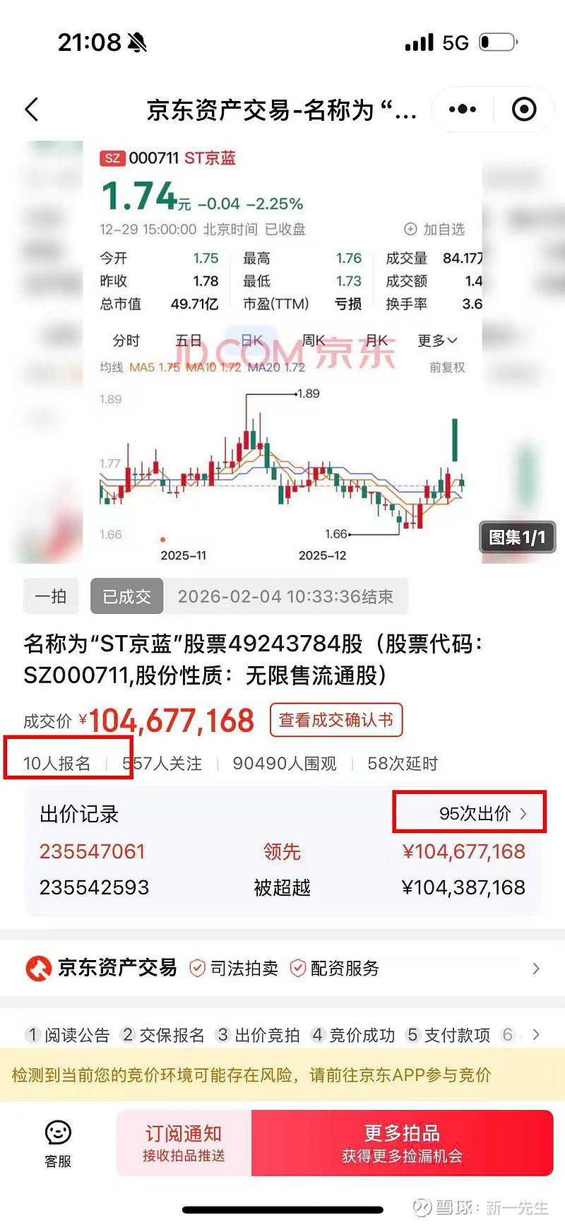 2.公告的几点风险提示是已知的事实,而参与st重整股的股民,相信综合素质比较高(特别是今天法拍的参与者),各种风险已研究,在已知这些存在的情况下也买入就不会轻易再以这些为理由卖出。