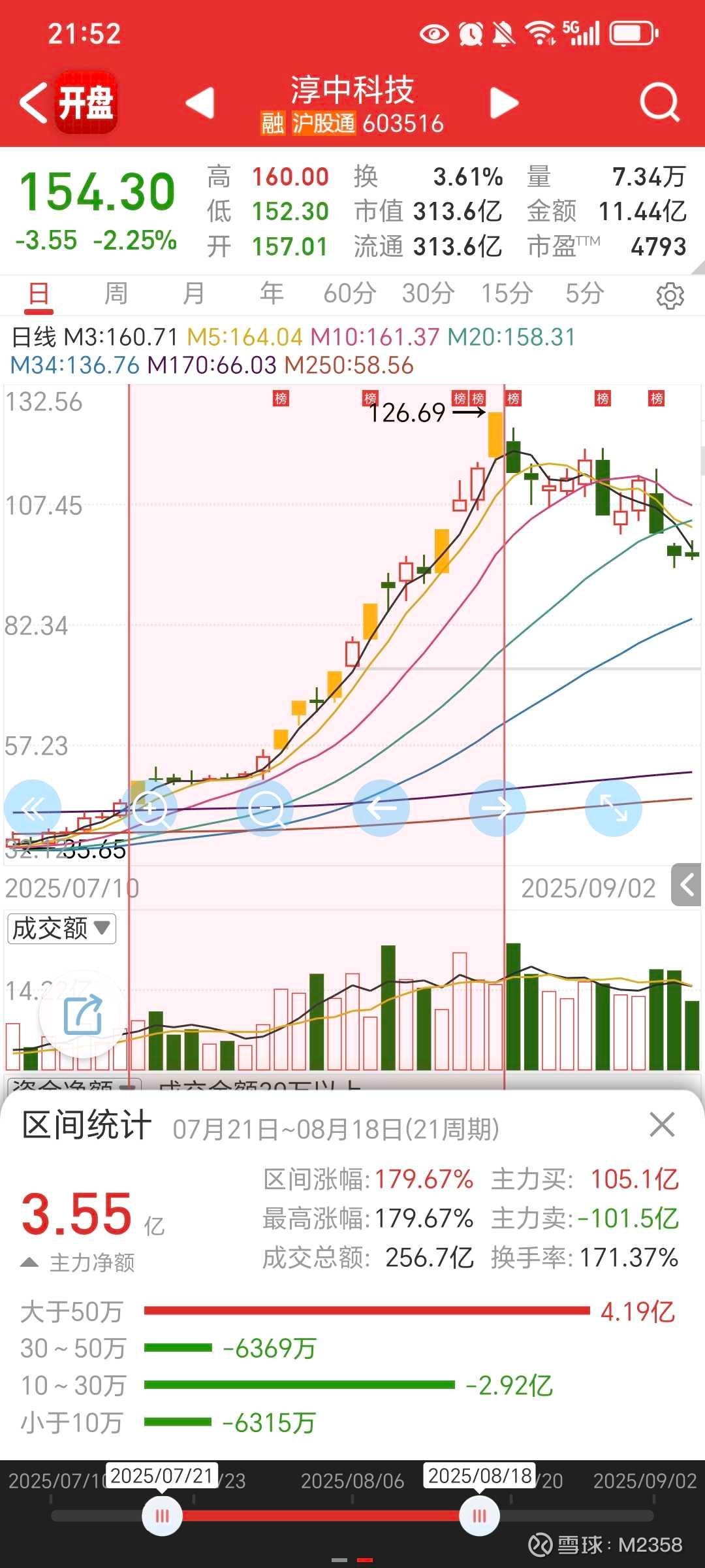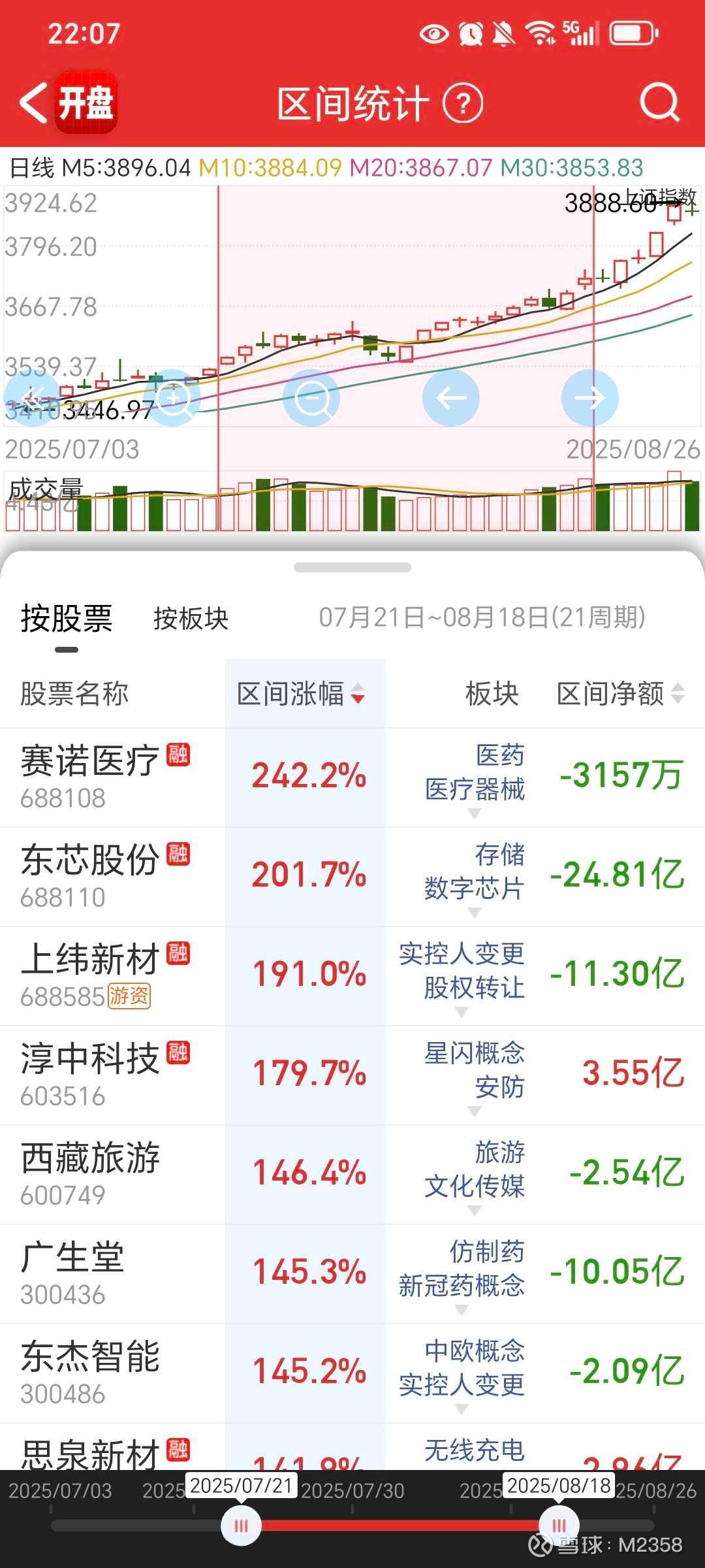 7.21雅下爆发,当时都以为雅下能走出大妖,结果笑到最后的依旧是首板的淳中科技,7.21涨到8.18,期间7.31,8.14指数大跌,淳中要不小阳要不中阳,很抗跌,周k5连阳。