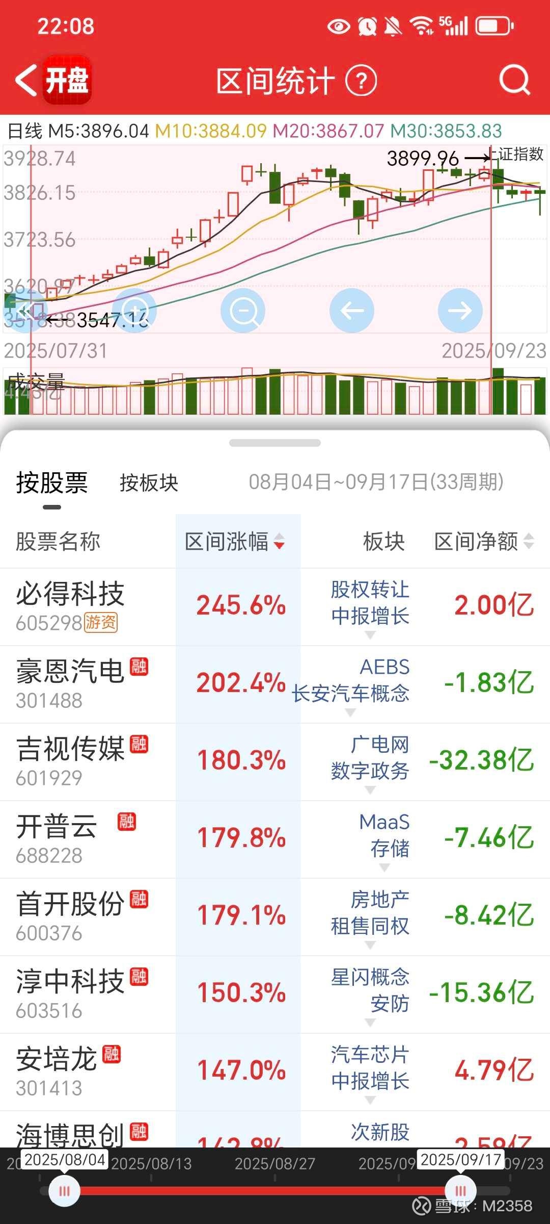 然后就是8.4走出来的吉视传媒跟必得科技,一直涨到了9月中旬,期间8.14,8.27,9.2-9.4共5个交易日大跌,吉视5天里4天红盘,必得5天3天红盘,抗跌的天数比较多,并且必得周k7连阳,吉视差一些走的2+3。