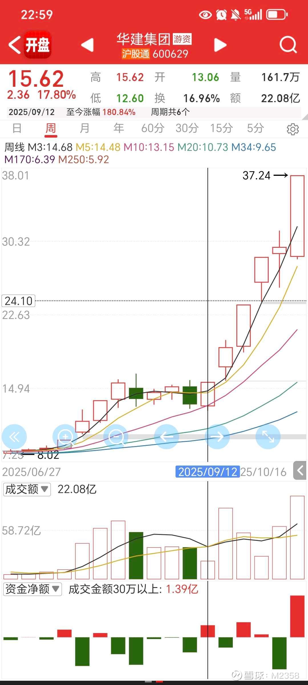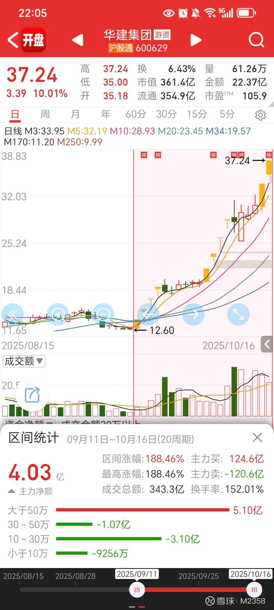 $华建集团(SH600629)$ 看到这个标题大家应该知道我说的谁,华建集团9月11日指数大阳日的首板,一直活跃到现在,感觉迷茫的时候把周期往前拉拉看就会有收获,也是蛮神奇的。这套东西我在去年已经系统性的讲过了,新粉可以看看去年9.19的帖子,所以我才那么重视10.9首板走出来的品种,再结合我之前说的多阳k,周线连阳的思路,这些牛股的共性其实真还蛮多的。