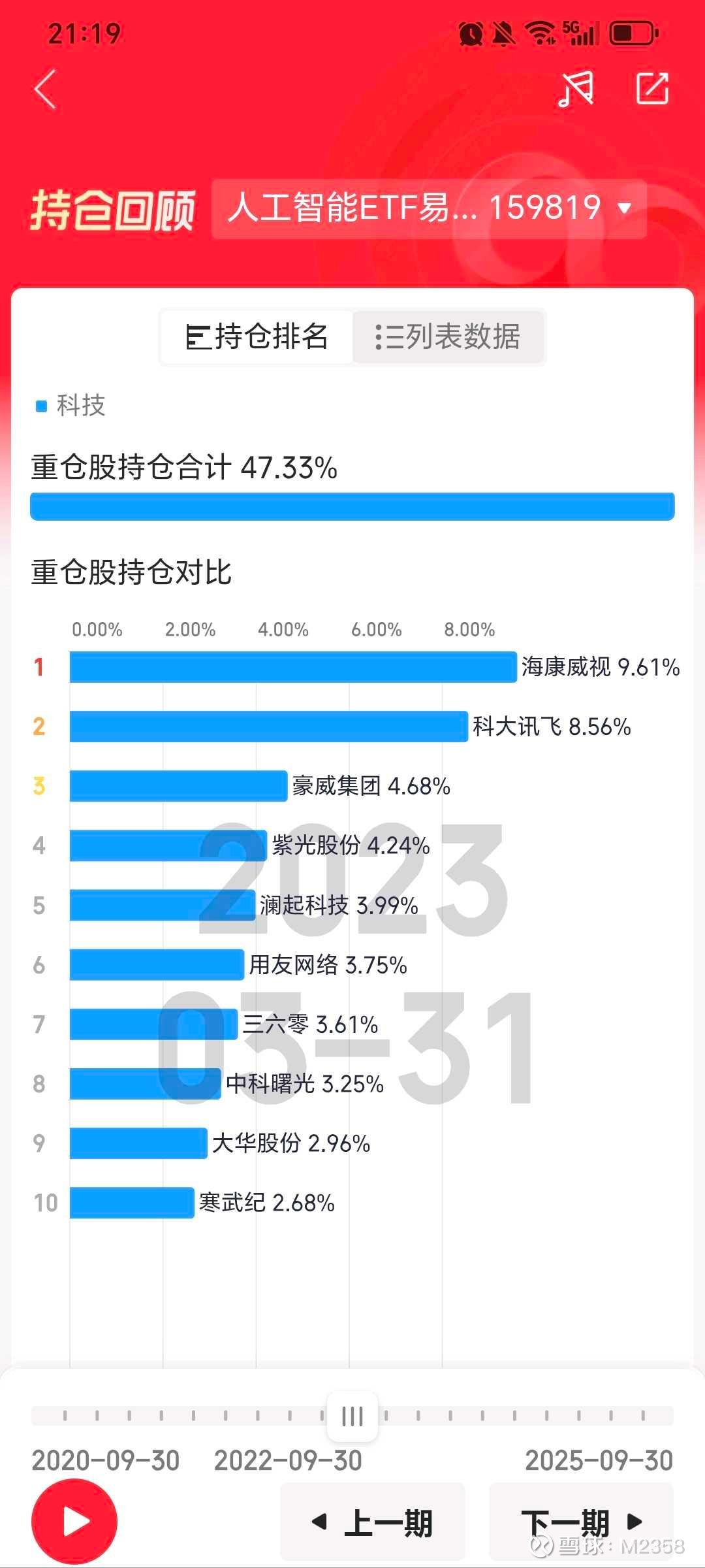 那么个人觉得切入点需要从etf的持仓下手,23年春节的时候chatgpt引爆了ai大行情,最终短期走出10倍行情的是联特科技,与此同时,中际旭创,新易盛短期涨幅也比较可观。从人工智能etf易方达的历史持仓来看,2023.6.30相比较2023.3.31前10持仓增加的正是中际跟新易盛,而从通信etf的持仓看这俩也明显增持的比例大幅上升,机构一般持股周期都会超过一个季度,毕竟他们追求的是稳定,而不是快进快出,上头不让大涨大跌,在我看来就是逼你学机构去做中长线投资,但其实我们可以根据最终走出来的个股形态来追求短期盈利的最大化。