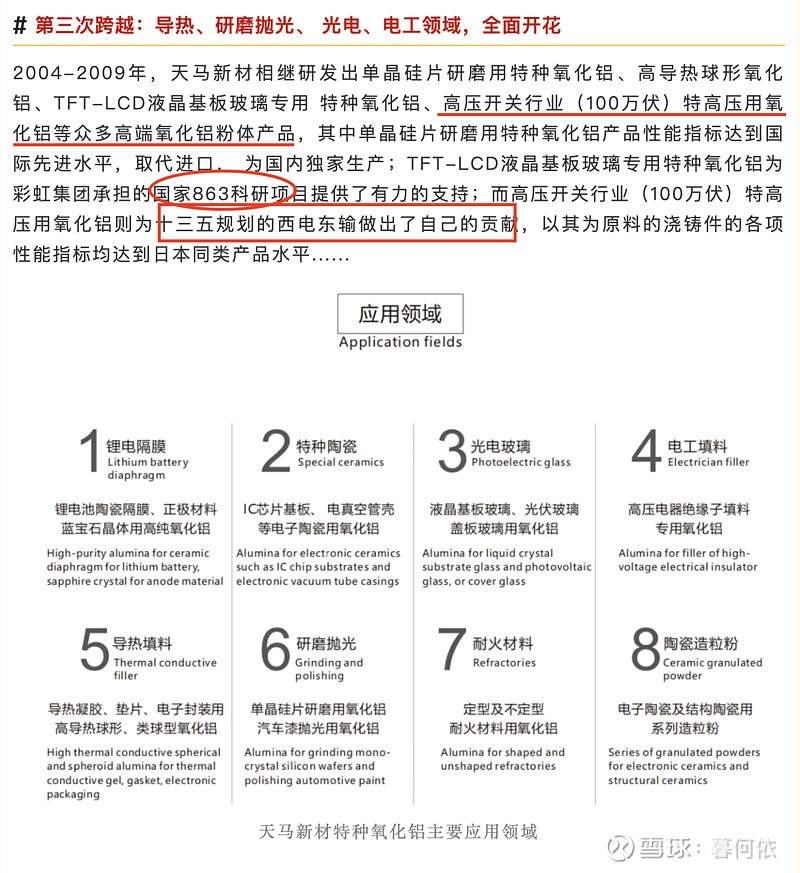 3. 高压开关行业(100万伏)特高压用氧化铝则为十三五规划的西电东输做出了自己的贡献,以其为原料的浇铸件的各项性能指标均达到日本同类产品水平