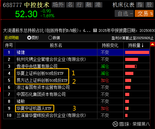 有兴趣的可以看看下图$中芯国际(SH688981)$ 、$中控技术(SH688777)$ 这些票,哪个前十大股东没有三五家ETF都不好意思跟别人打招呼。
