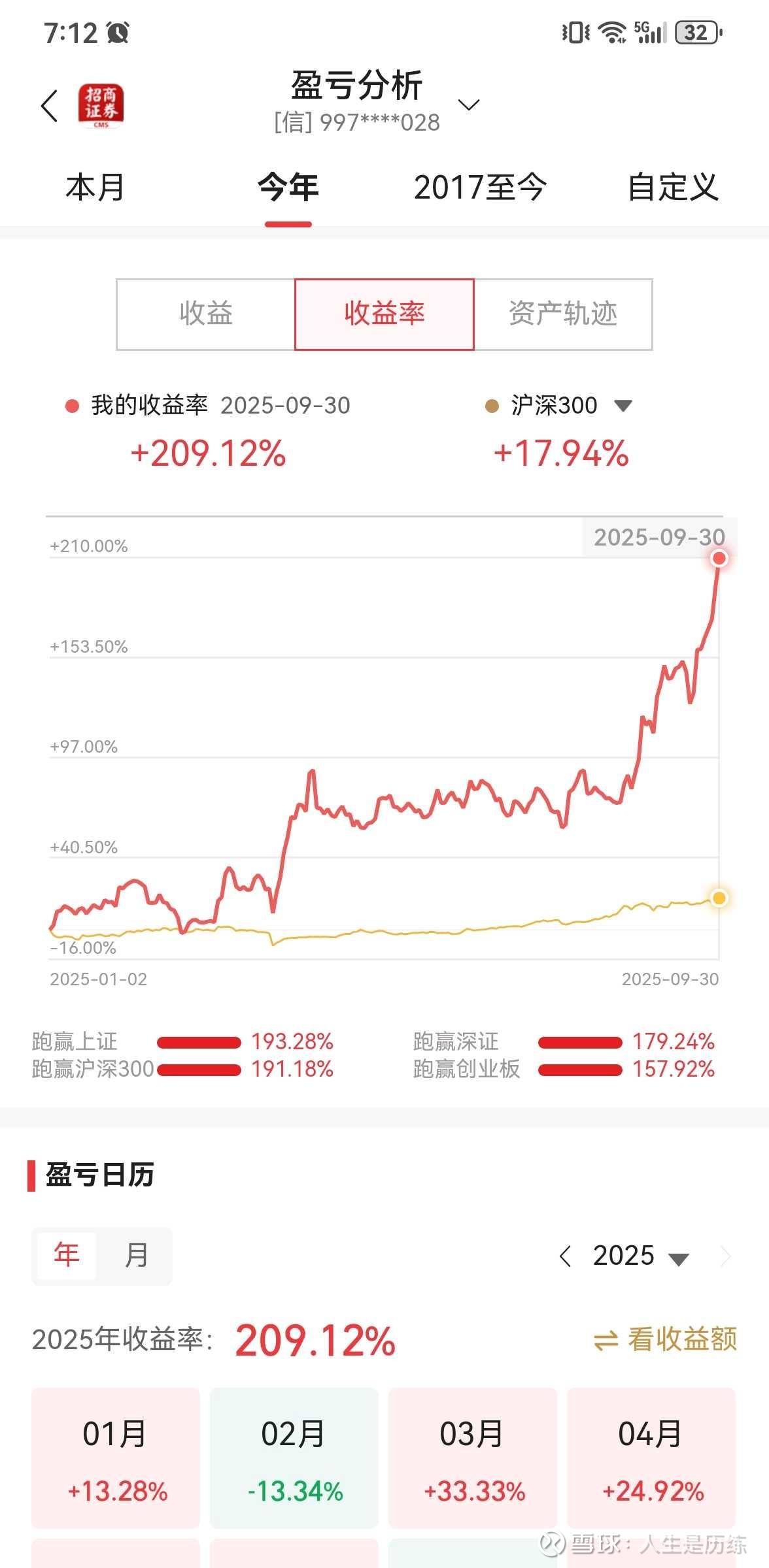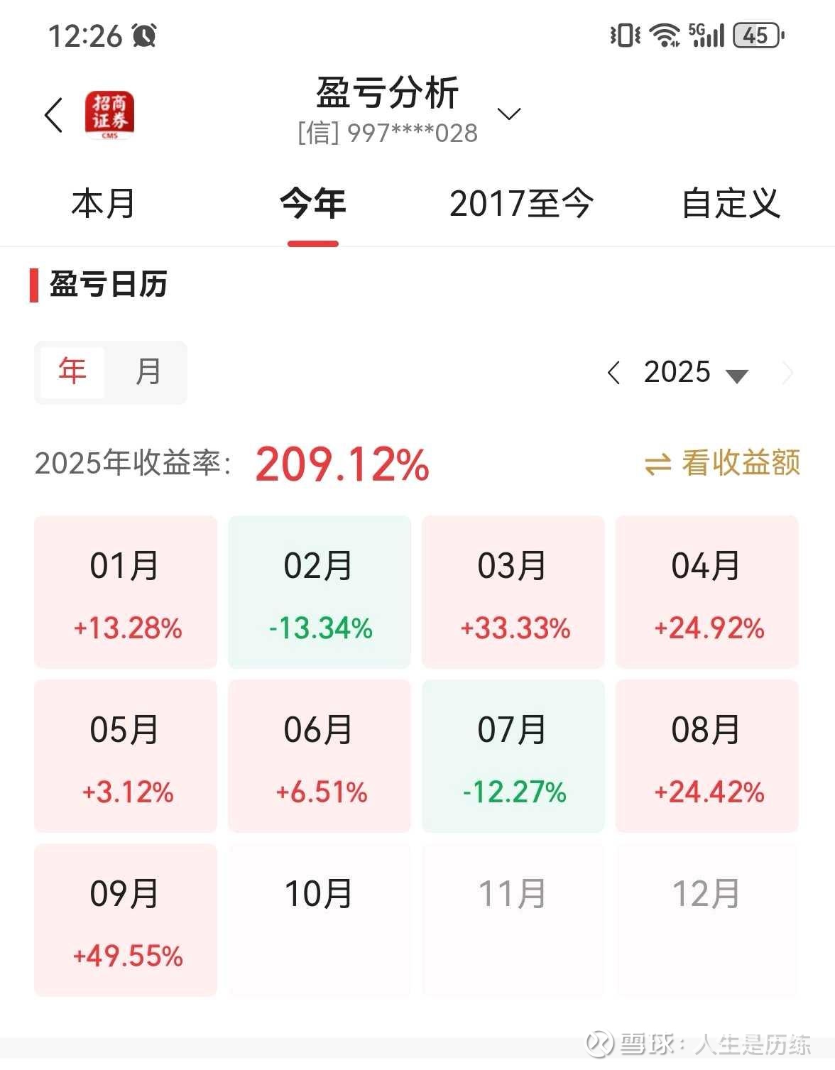 9月大A账户收益率49.55%,截止至月底今年收益率209%,港股账户一路满仓没有融资,收益率约150%,这是本人2023年以来坚持大比例持有黄金股却被国内黄金股虐了两年只有个位数盈利后的收获季,港股更是2024年亏损后的收获季。2023年-2024年因为黄金股被虐,还转出不少资金支持家里生活开支,严重影响账户复利收益,还好今年账户没有资金进出了。资金进出了的小零头是个人习惯买尽最后一个子儿,当不够买100股的时候要转入零钱配成整100股,朋友们别笑话啊,个人期货交易员出身,在个人认为确定性的机会面前就是喜欢将账户资金利用到极致。