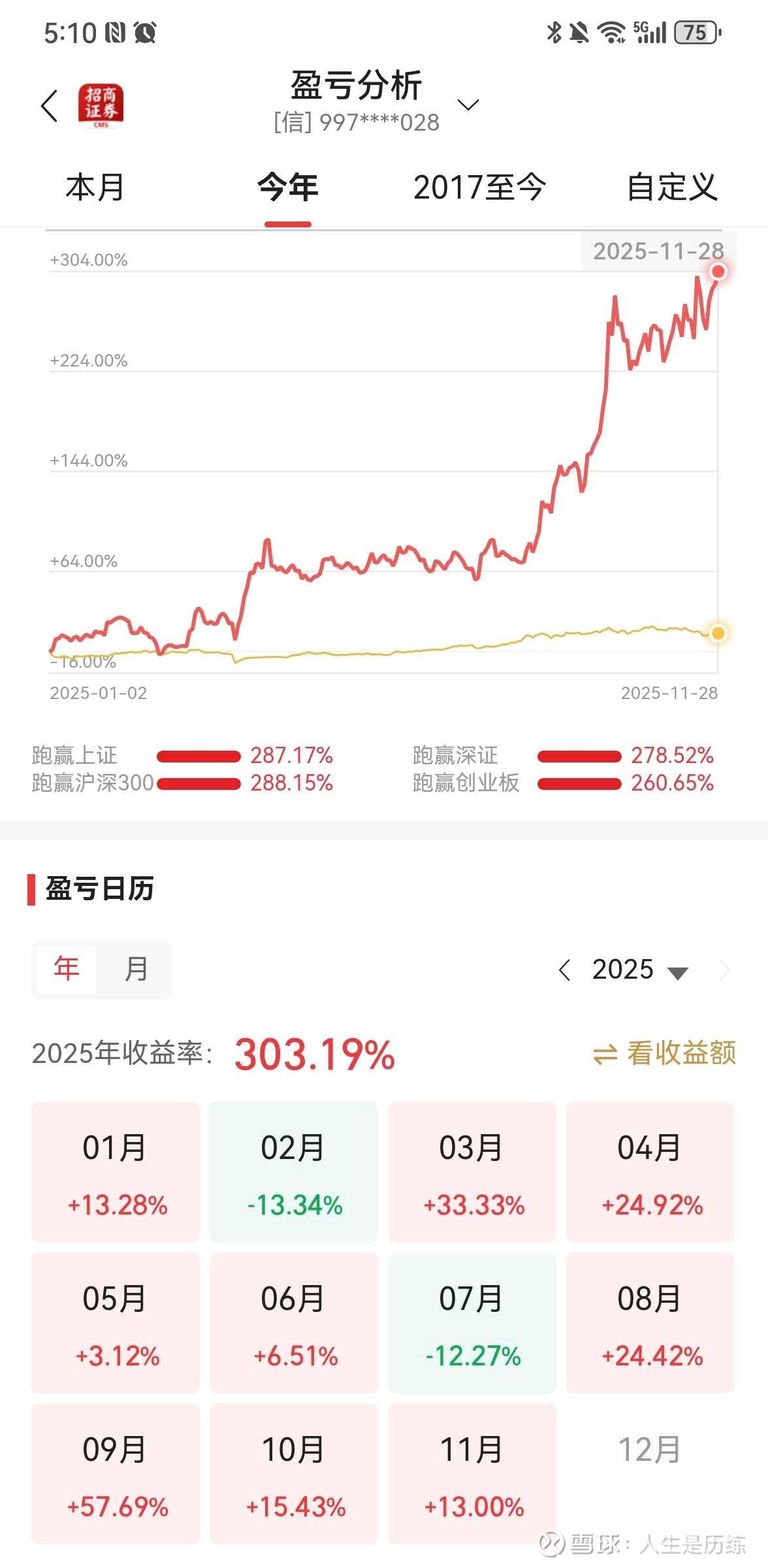 本月个人操作谨慎为主,但因为主打仓位的黄金股已经调整到位,个人没有按照上月总结的策略去降杠杆,反而在黄金股二次探底的11月18日于21.06元附近满仓满融买入上月23.84卖出的中金黄金仓位,以34.63元增加山东黄金A的仓位,这个时机把握的不错。另外,对中矿资源在高位做了清仓动作,清仓资金也是逐步买入山东黄金和中金黄金,在中矿资源回落到60元附近时又卖出相同仓位的黄金股买回中矿资源,中矿资源卖出和买回的价差盈利率超过10%。得益于稳健操作策略和高低切换措施得当,个人11月份总体保持超过大盘指数的收益率,本月账户收益率13%,全年收益率再创新高,达到303%,收益率进入年内三倍的区间。