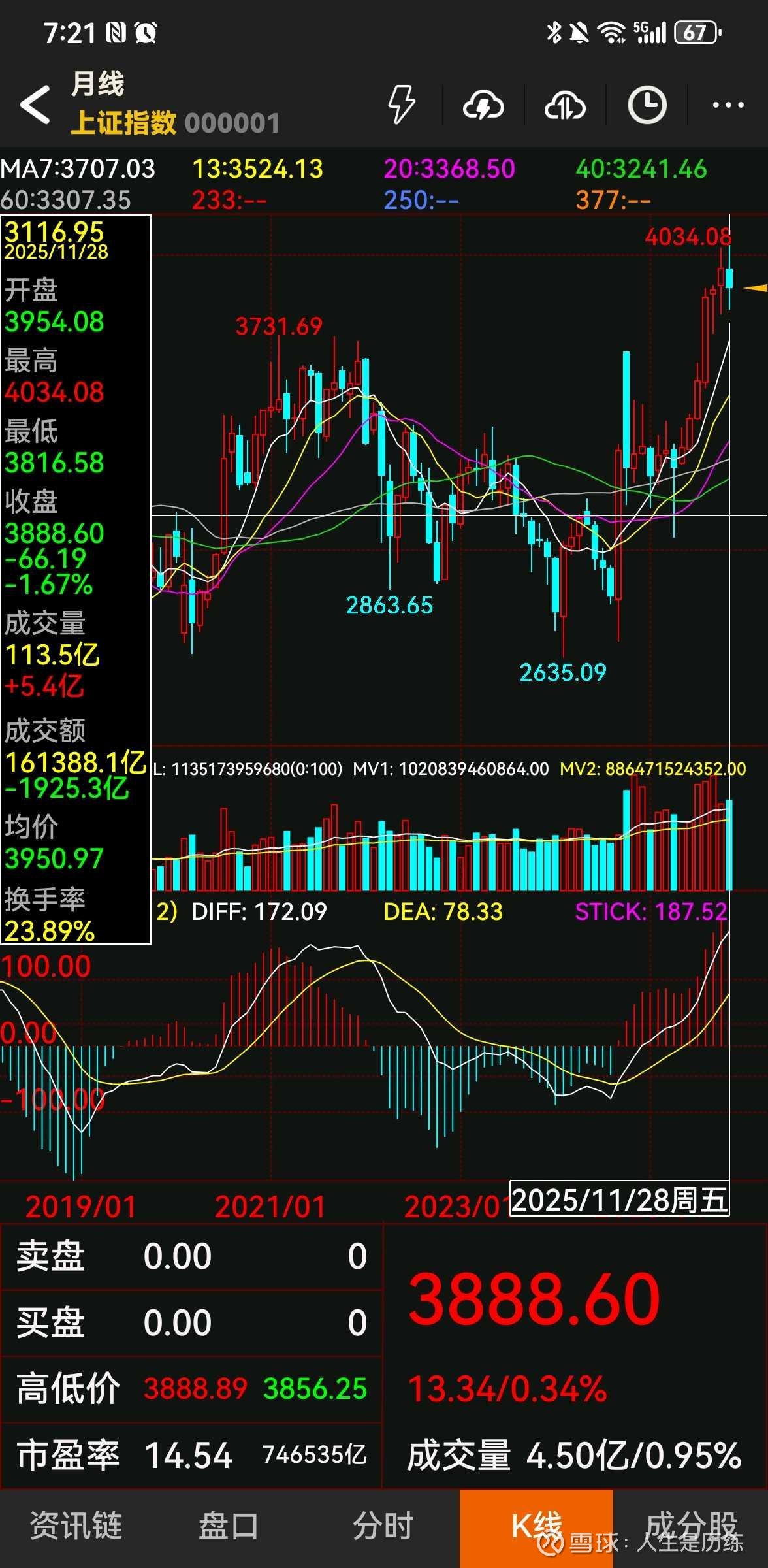 本月行情与个人此前10月份相似,年底主力资金谨慎,大盘指数进入调整期,个股普遍下跌回调。