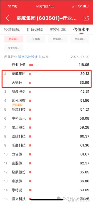 三季报扣非增长33.45%,对应当前PETTM39倍的估值,从绝对数看,肯定不便宜;但是考虑到科技自主的时代背景,半导体作为未来科技自主的主要方向,以及智能化的万事万物都离不开图像识别,依然有较大的行业增长空间(可以参考历史文章);对比同行业内其它公司估值,豪威排名倒数第2(第1的是天德钰),以及豪威在CIS领域的全球竞争地位。总之,选择继续持有。对与错,只能未来再来评价。
