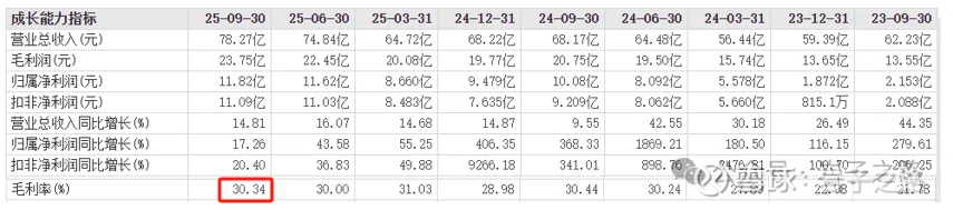 25Q3毛利率30.34%,处于几个季度的较高水平。