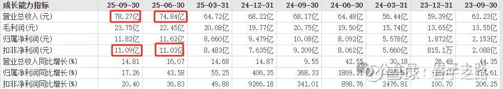 25Q3营收78.27亿元,创造历史新高,同比增长14.81%,增速上与25Q2的16.07%相差很小,比上一次25Q2的历史记录74.84亿,多出3.43亿元。