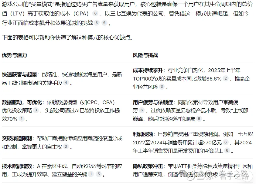 上篇文章分析三七互娱,一方面确实行业类估值最低,分红高,历史业绩稳健,另一方面对它买量模式未来前景的信心稍缺(仅是行外人士粗浅认知),我这个问题提给DS,它是如下回答: