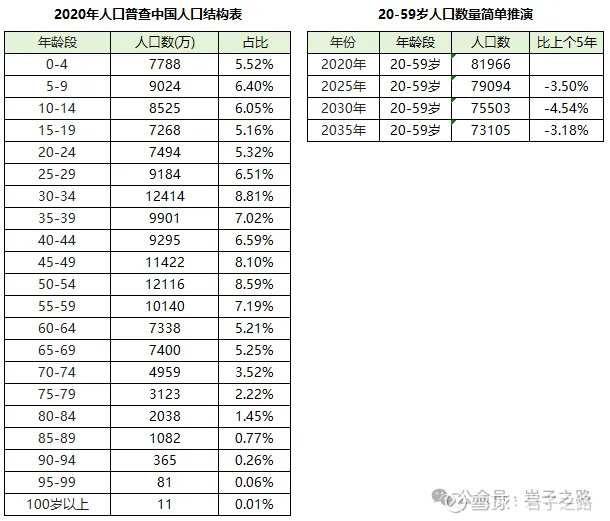 国内消费人群的变化趋势。20-59岁青壮年是啤酒消费的主要客群。如下表为2020年人口普查中国的人口结构表。在不考虑死亡率的情况下,对20-59岁人口数量简单推演,未来中长期都处于缓慢下降中。