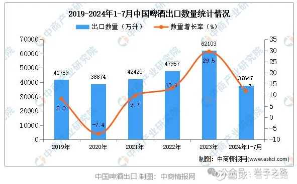 一是向外面走,全球化战略。 我国进口啤酒数量连年下降,出口啤酒却快速增长。数据显示,我国啤酒出口从2019年的41759万升增长至2023年的62103万升。预计未来几年,我国啤酒的出口还将继续保持增长态势。