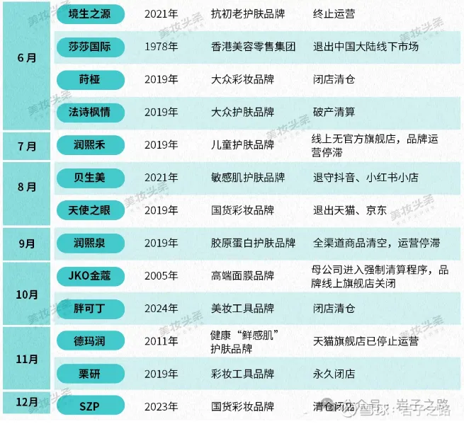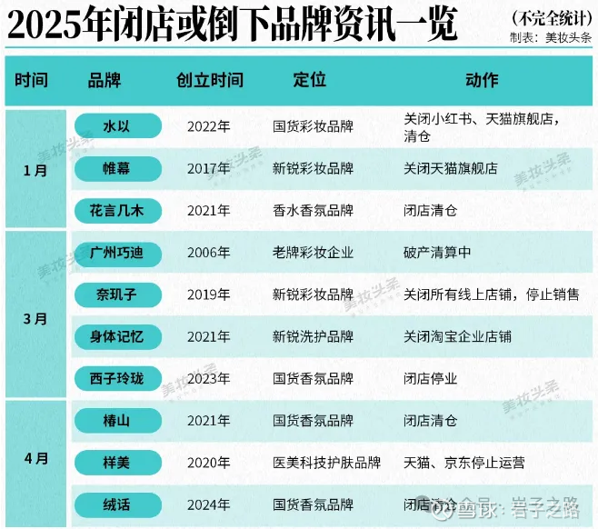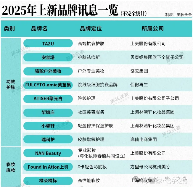 并且各种品牌新陈代谢速度非常快,以2025年为例,有20+品牌新生,23+品牌消亡。据美妆头条不完全统计,2025年以来,国货美妆至少20+新品牌面世(见下图)。