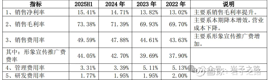 我知道化妆品这个行业主要靠对用户不断地心智教育,知道它的营销成本会比一般消费品要高(比如伊利24年销售费率为19%)。但整体高达50%左右的销售费率,还是远超我之前的认知。24年珀莱雅销售费率47.88%,贝泰妮49.9%,上海家化46.7%,丸美生物55%。这个销售费率和游戏行业有得一拼,甚至整体上还高于游戏行业。此前文章提到的,买量模式的三七互娱销售费率为55%左右,巨人网络24年销售费率为34.38%,恺英网络为33.89%。