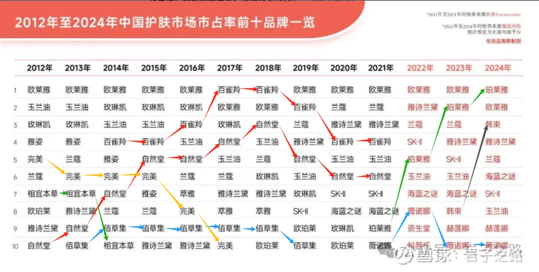 榜单上的常青树是一些国际知名化妆品巨头,欧莱雅、玉兰油、雅诗兰黛。何时国货也能迎来常青树?国内能常青,并且还能海外发展的企业未来才具有更大的投资价值。我相信,未来中国一定能诞生这样的企业,大家有慧眼看出来会是谁吗?珀莱雅?上美股份(韩束)?这远超过我的能力范畴。