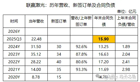 25Q3联赢激光、海目星、先导智能的合同负债相比24年都有大幅增长,特别是海目星、先导智能刷新了历史记录,也侧面印证25年下游电池厂扩产,公司新签订单数大幅增长。毛估估2026年的利润能刷新历史记录。股价会吗?如果按照PE核算也不算便宜,当前的价格好像有点尴尬。据网友反映,卖方研报的数据,联营2025年订单为50亿,海目星为95亿,这两个数据不保真,不过从当前的已知数据和趋势分析有可能性,供参考,以企业公告为准。