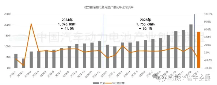 中国汽车动力电池产业创新联盟近日发布了2026年1月的电池行业数据。数据显示:1月,我国动力和储能电池合计产量为168.0GWh,环比下