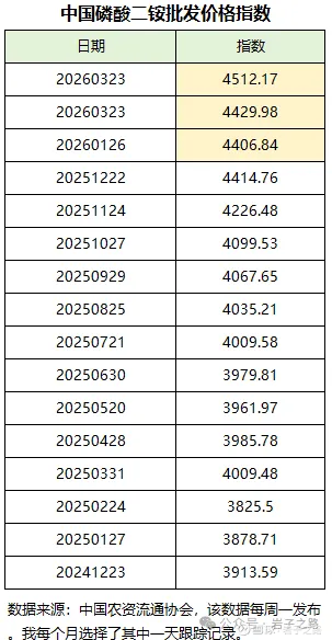 根据中国农资流通协会公布的数据,磷肥的价格在缓慢上涨,3月的价格比25年年末涨了97.41元/吨,依然是不足以弥补硫磺价格暴涨带来的成本增加。