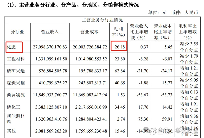 2、目前的磷肥价格毛利率尚可,为了保持市占率,磷肥企业选择自己承担多数涨价成本。25年云天化化肥板块(主要是磷肥)毛利率为26.18%(24年29.73%),说真心话,这个26.18%毛利率并不低(当然天云天化的化肥毛利率在同行中是较高的),前面提到的中国中车,其新能源业务的毛利率才18%,大名鼎鼎的宁王的25年毛利率才26.27%。