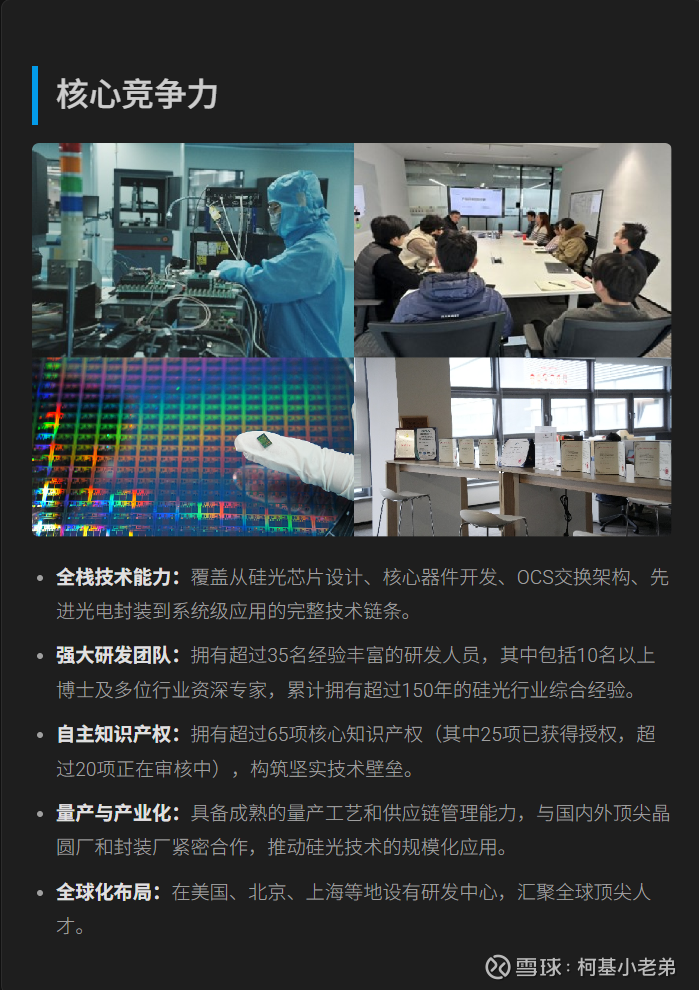• 构建全栈能力:35人研发团队中10+博士领衔,凭借从英特尔积累的技术实力,覆盖从硅光芯片设计、OCS交换架构到先进光电封装全链条,手握65项核心知识产权(25项已授权),构建起坚实技术壁垒 。