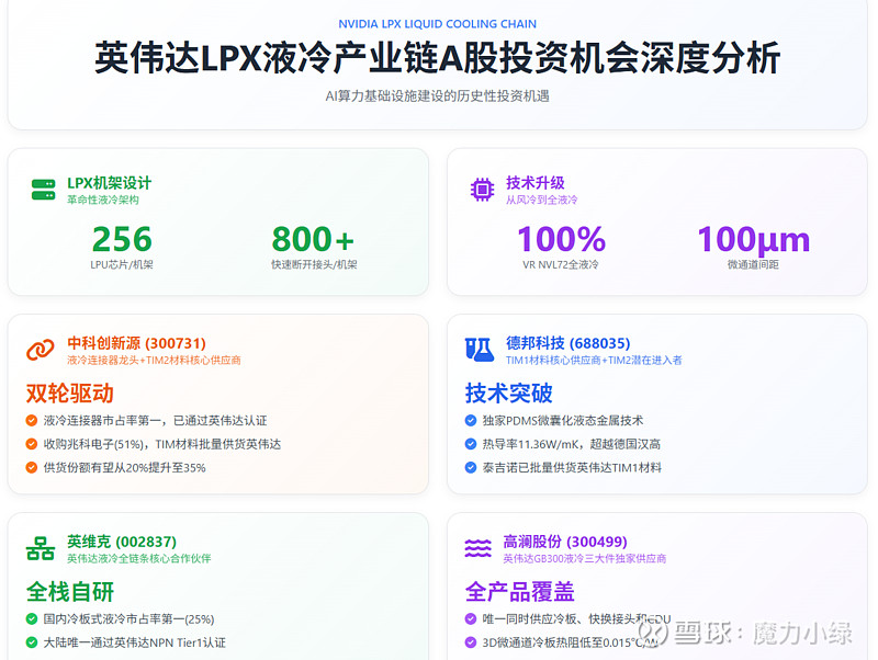 英伟达 LPX 液冷产业链正处于AI 时代的历史性发展机遇期。随着 AI 芯片功耗的指数级增长和 LPX 架构的革命性设计,液冷技术从 "可选项" 变成了 "必选项",相关产业链企业迎来了前所未有的发展机遇。