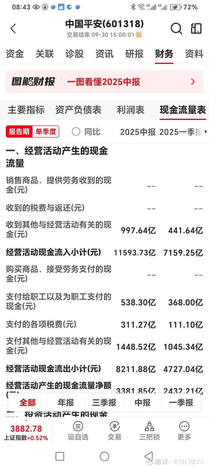 · 中报显示,经营活动现金流净额高达3331.85亿元。这是什么概念?同比大幅增长,它意味着平安的主业是一台强大的“印钞机”,这是公司持续分红、应对风险和进行未来投资的根本底气。