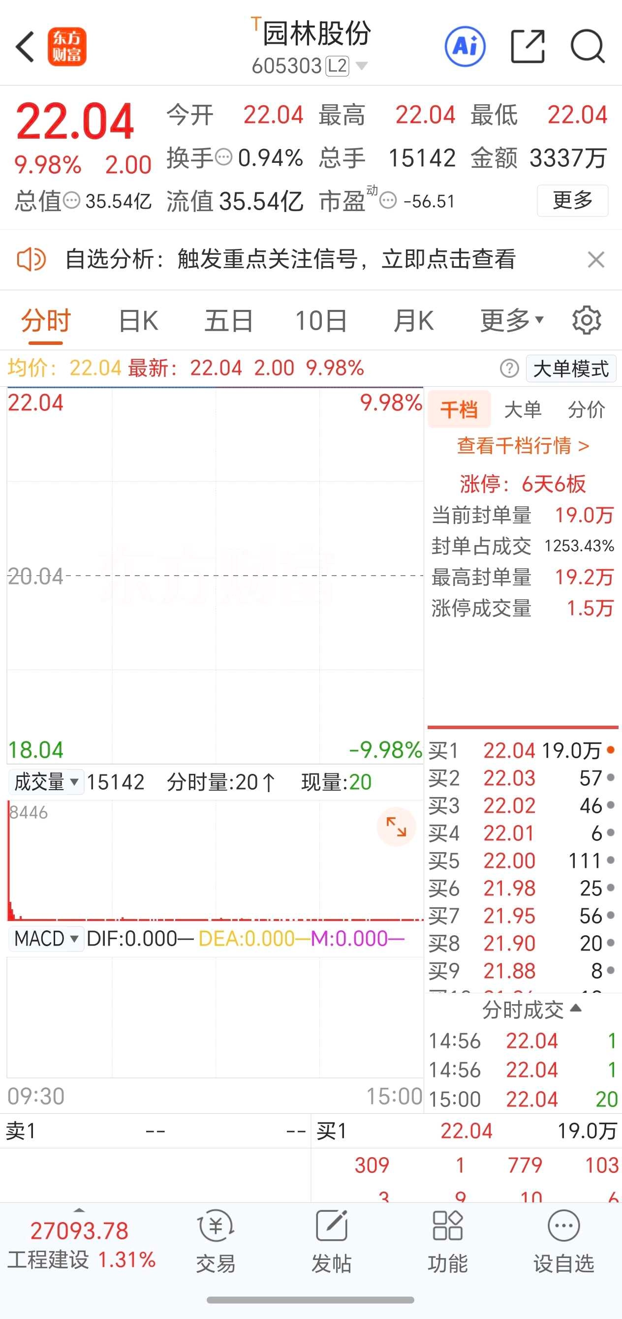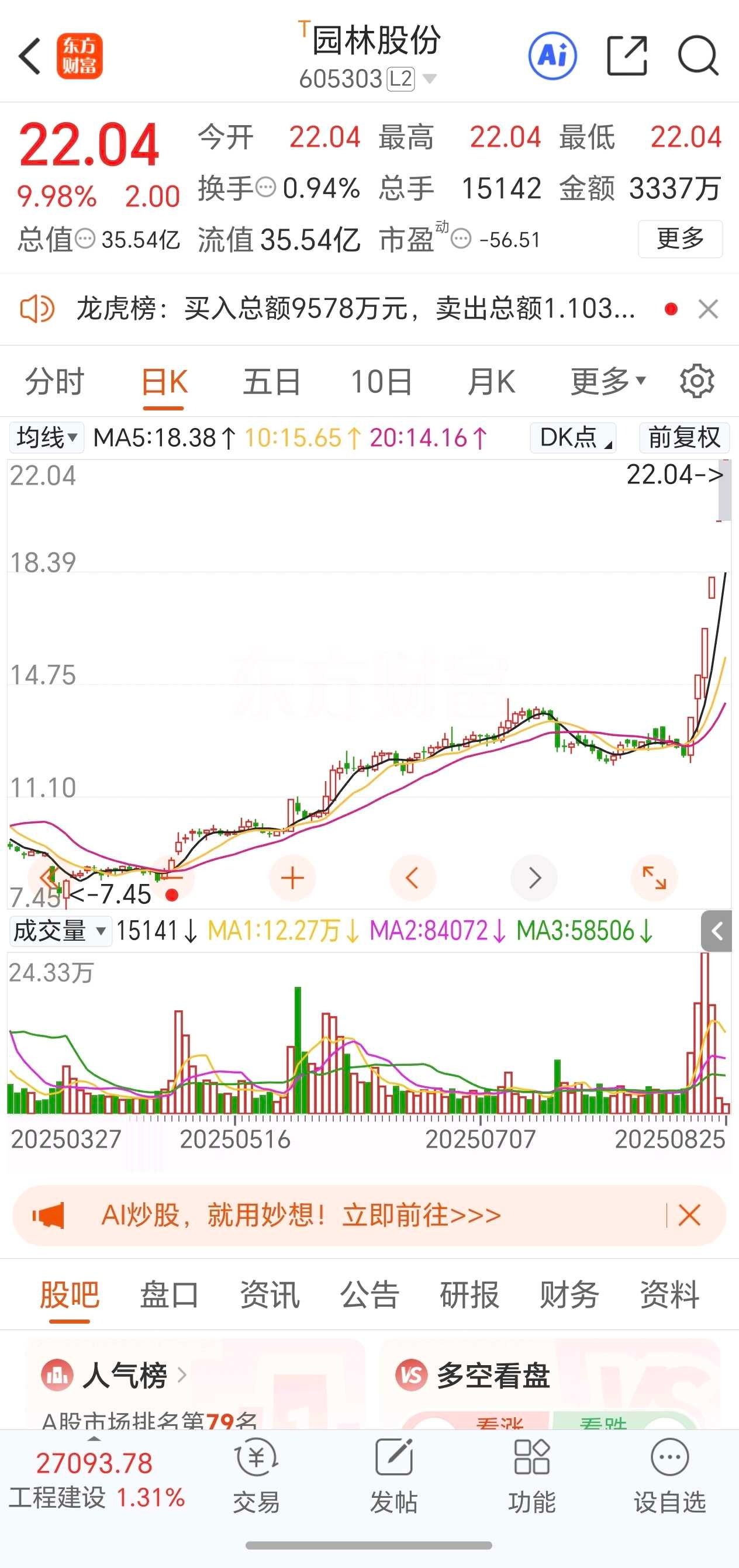 园林股份:6板,一字板,炒作参股云计算平台+AI算力+园林工程+旅游。
