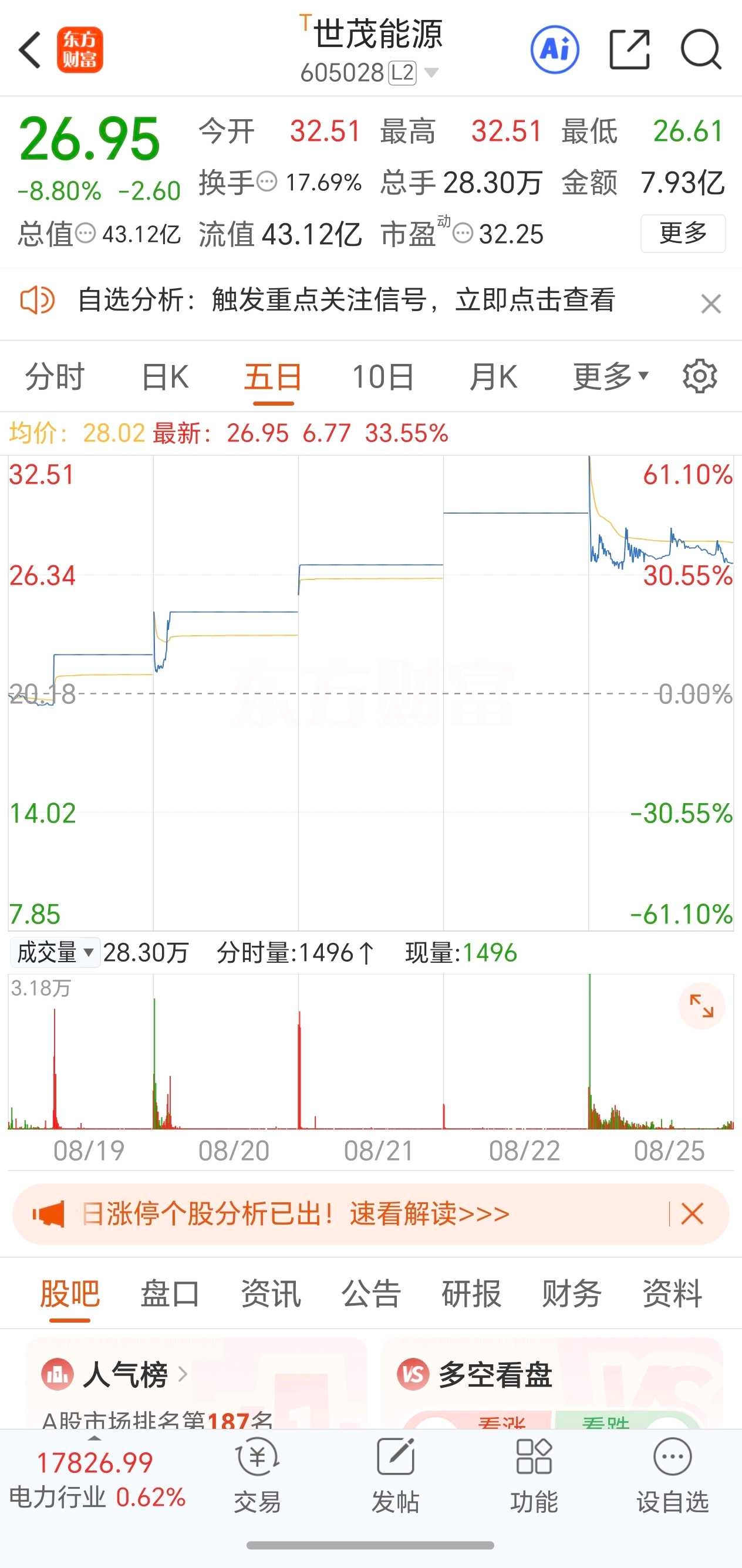 世茂能源:5板竞价涨停,开盘瀑布杀,天地板,炒作高温+光伏发电+热电联产+垃圾焚烧。