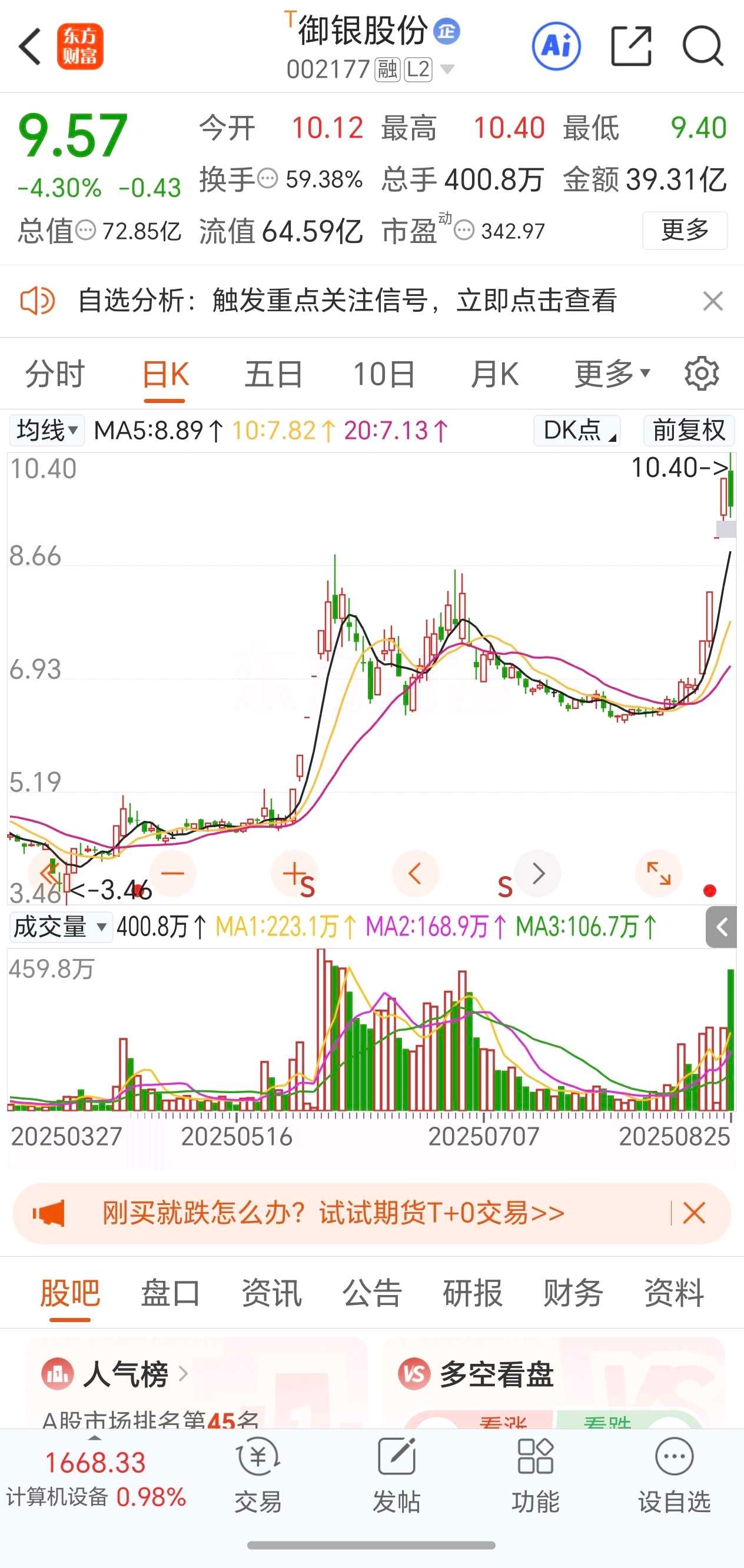 御银股份:开盘下杀,炒作泛金融+数字货币+重组预期+金融设备。