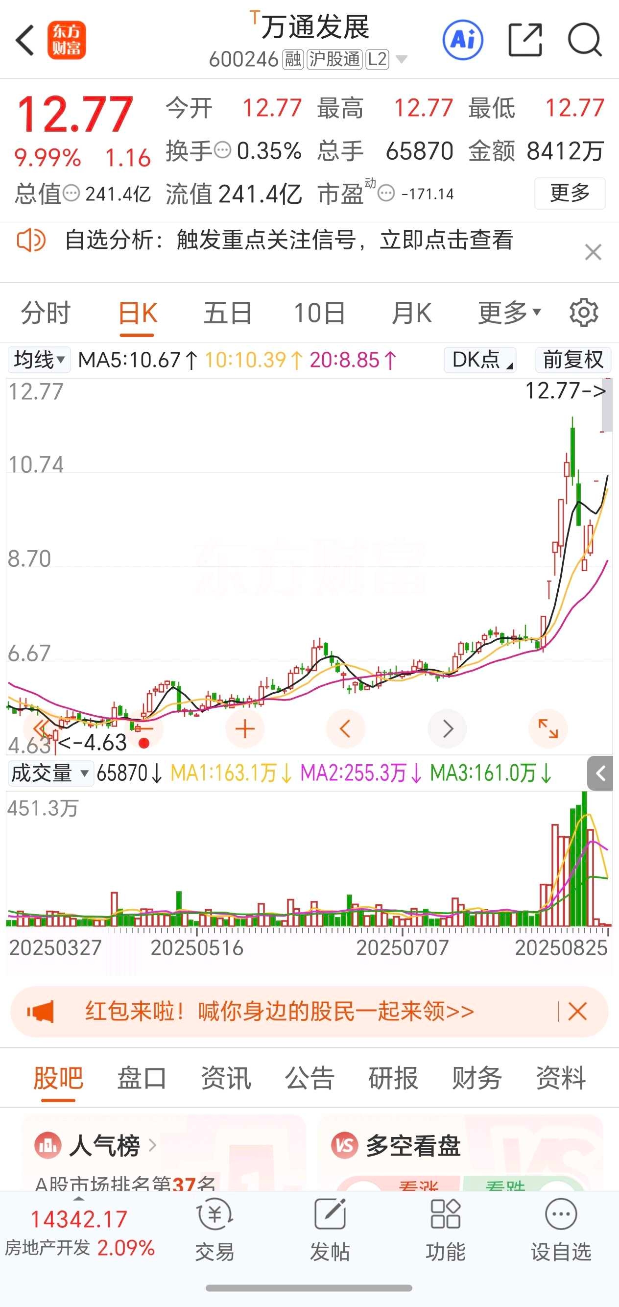 万通发展:3板,一字板,炒作炒作收购芯片公司数渡科技。