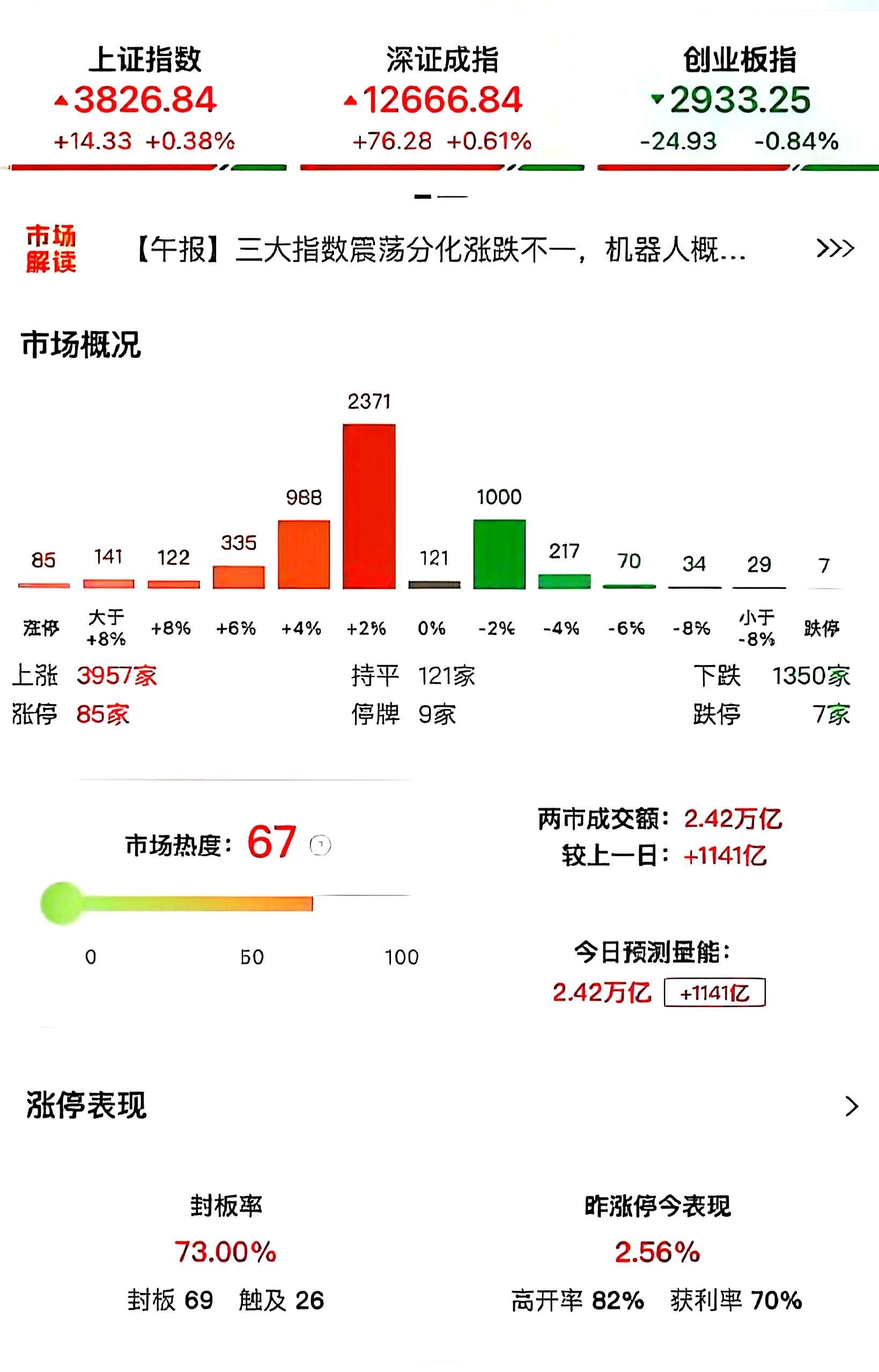 上证收3826点,两市成交额2.42万亿。