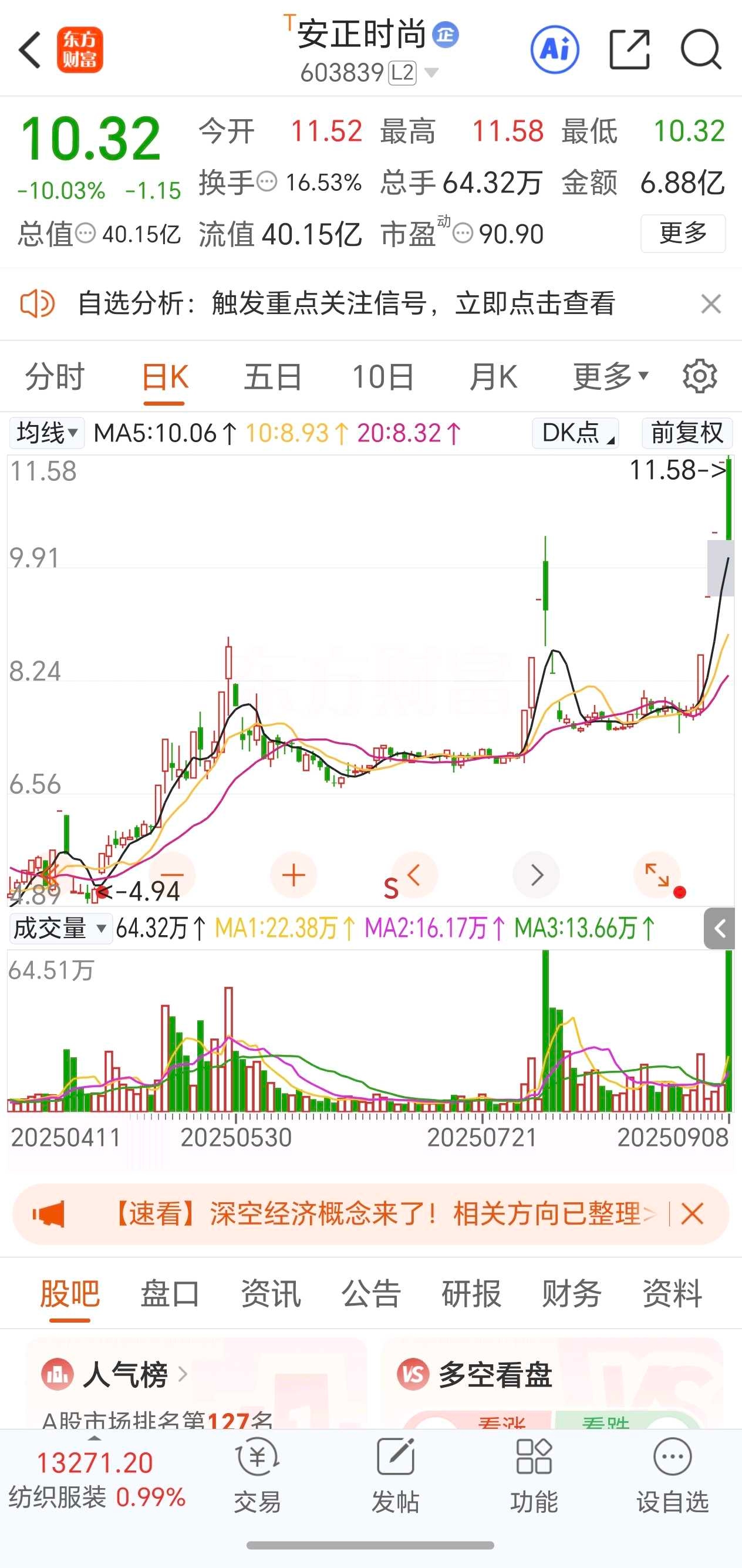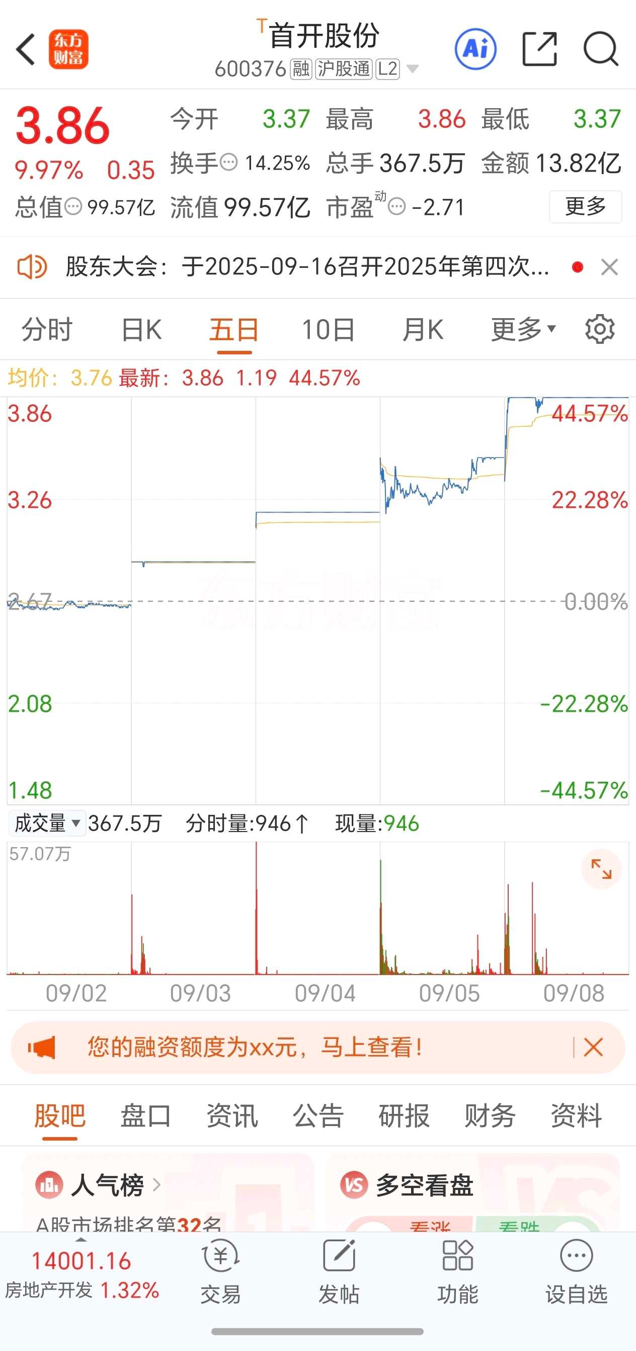 首开股份:4板,换手板,炒作间接投资宇树机器人+低价股+房地产开发。