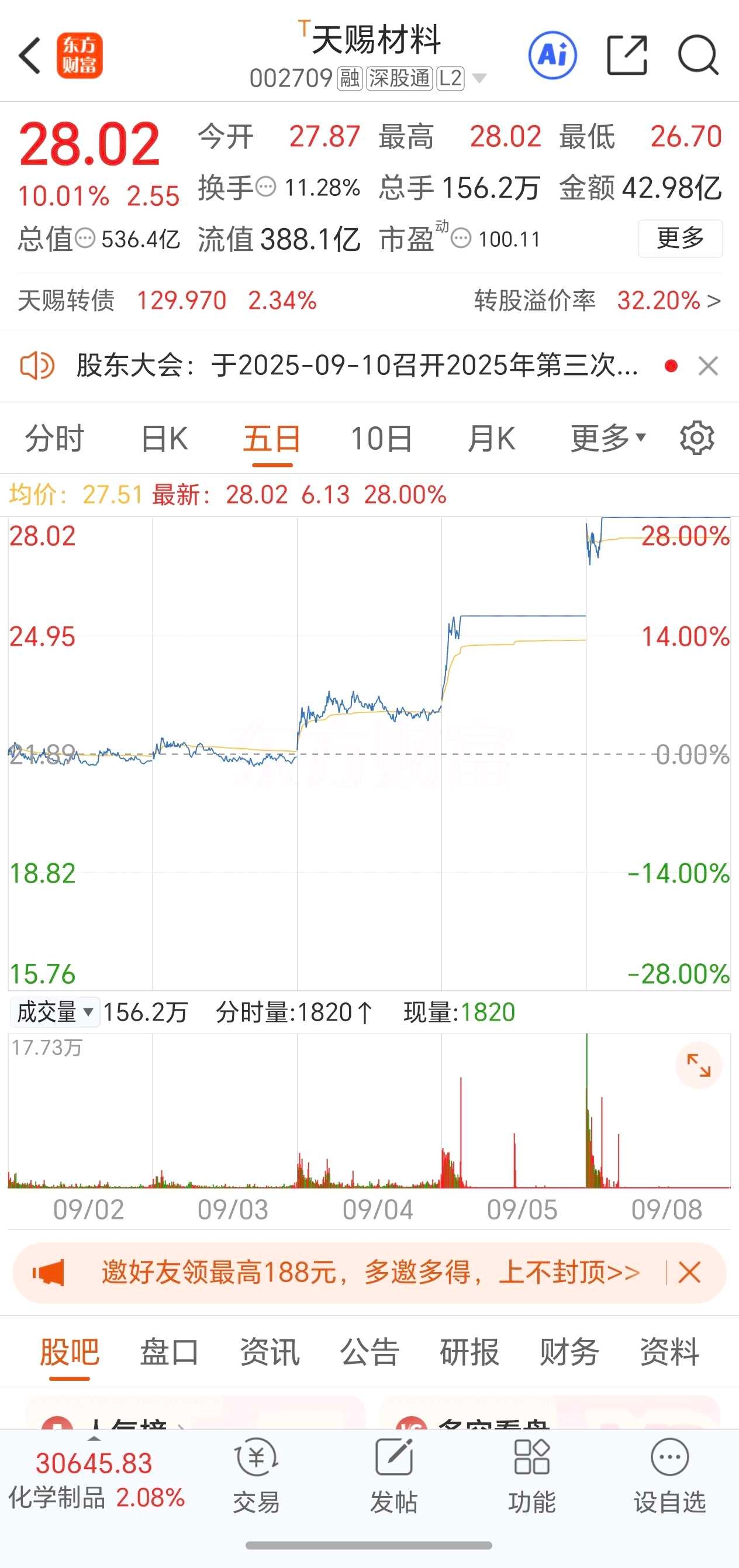 天赐材料:2板,换手板,炒作固态电池电解质+电解液龙头,有可转债。