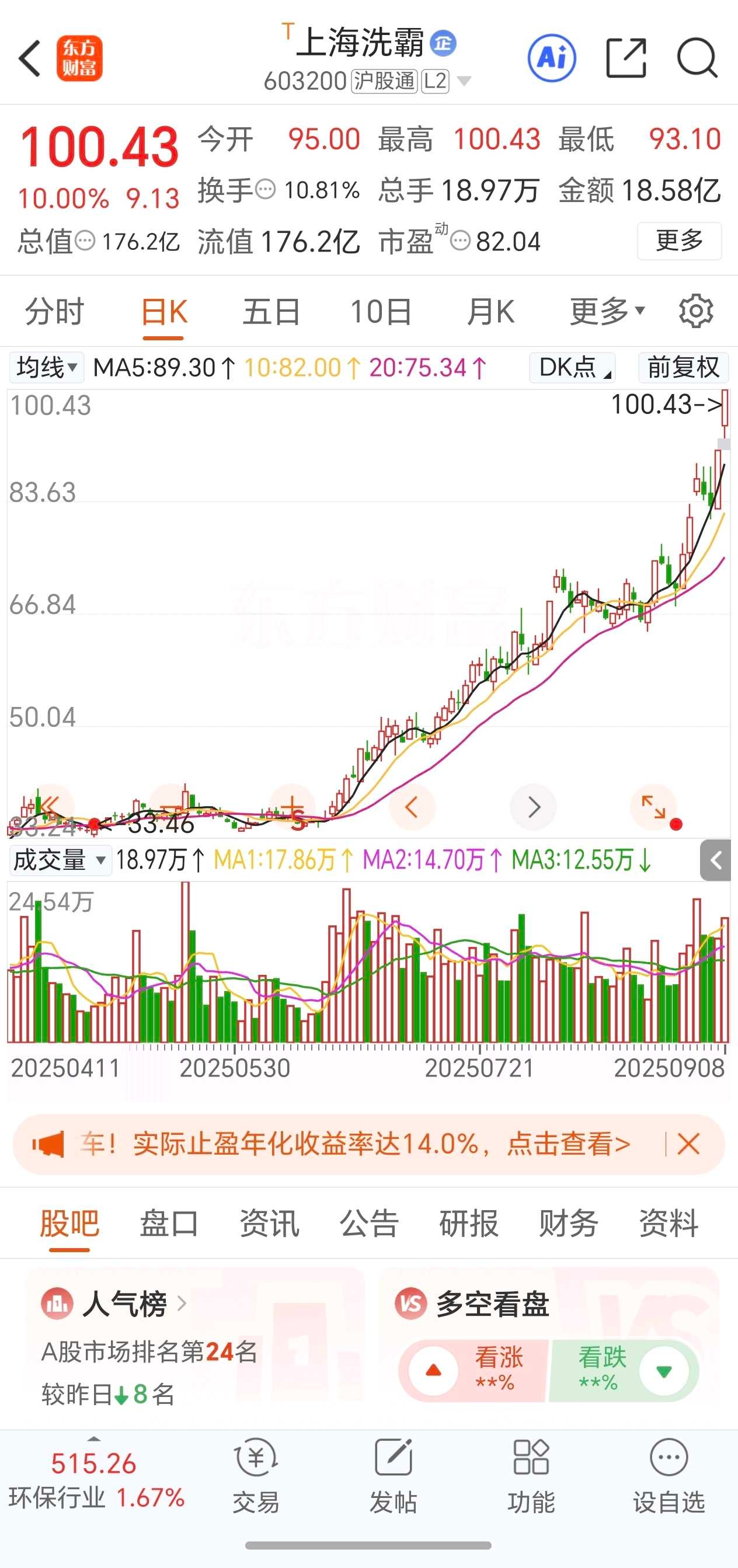 上海洗霸:2板,换手弱板,炒作固态电池+数据中心+硅碳负极+水处理。